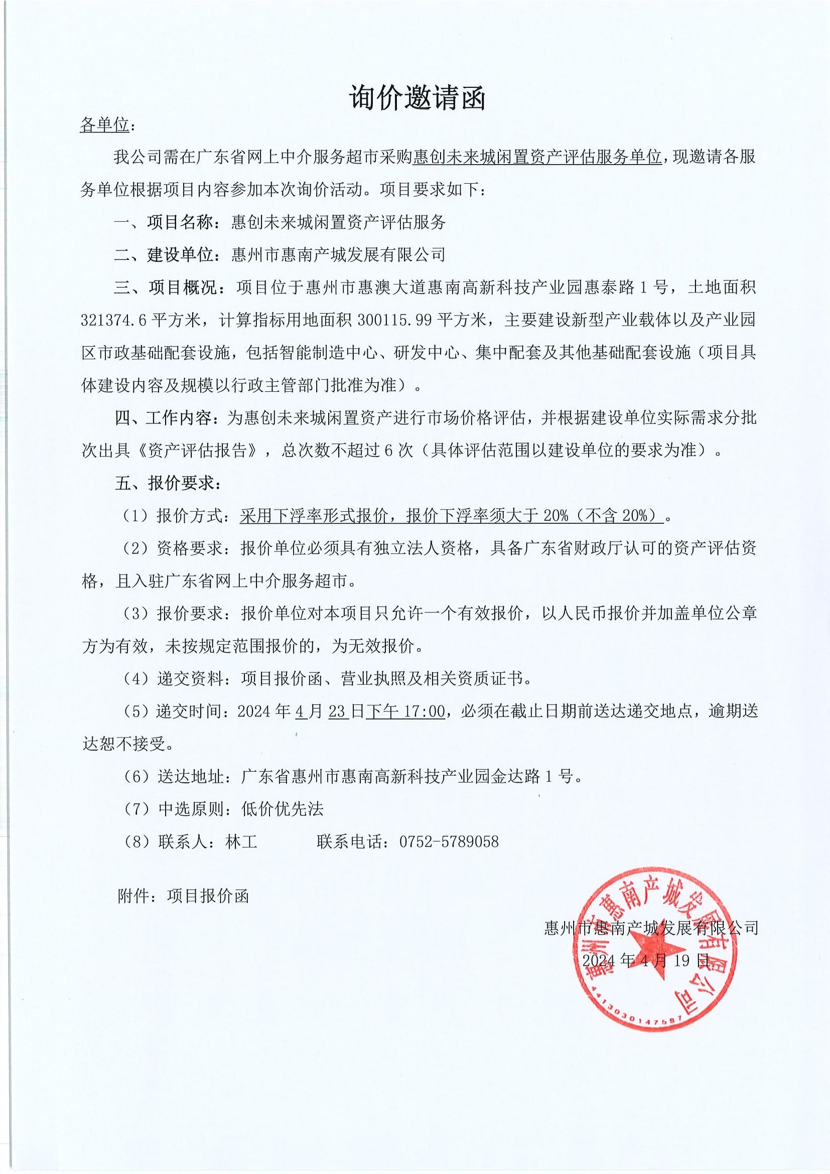 惠創(chuàng)未來(lái)城閑置資產(chǎn)評(píng)估服務(wù)詢價(jià)邀請(qǐng)函