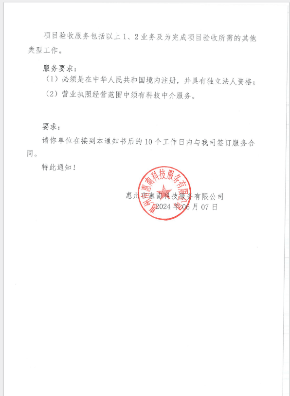 【中標(biāo)通知】惠州市惠南智能終端產(chǎn)業(yè)全鏈條全要素專業(yè)孵化園項(xiàng)目驗(yàn)收服務(wù)